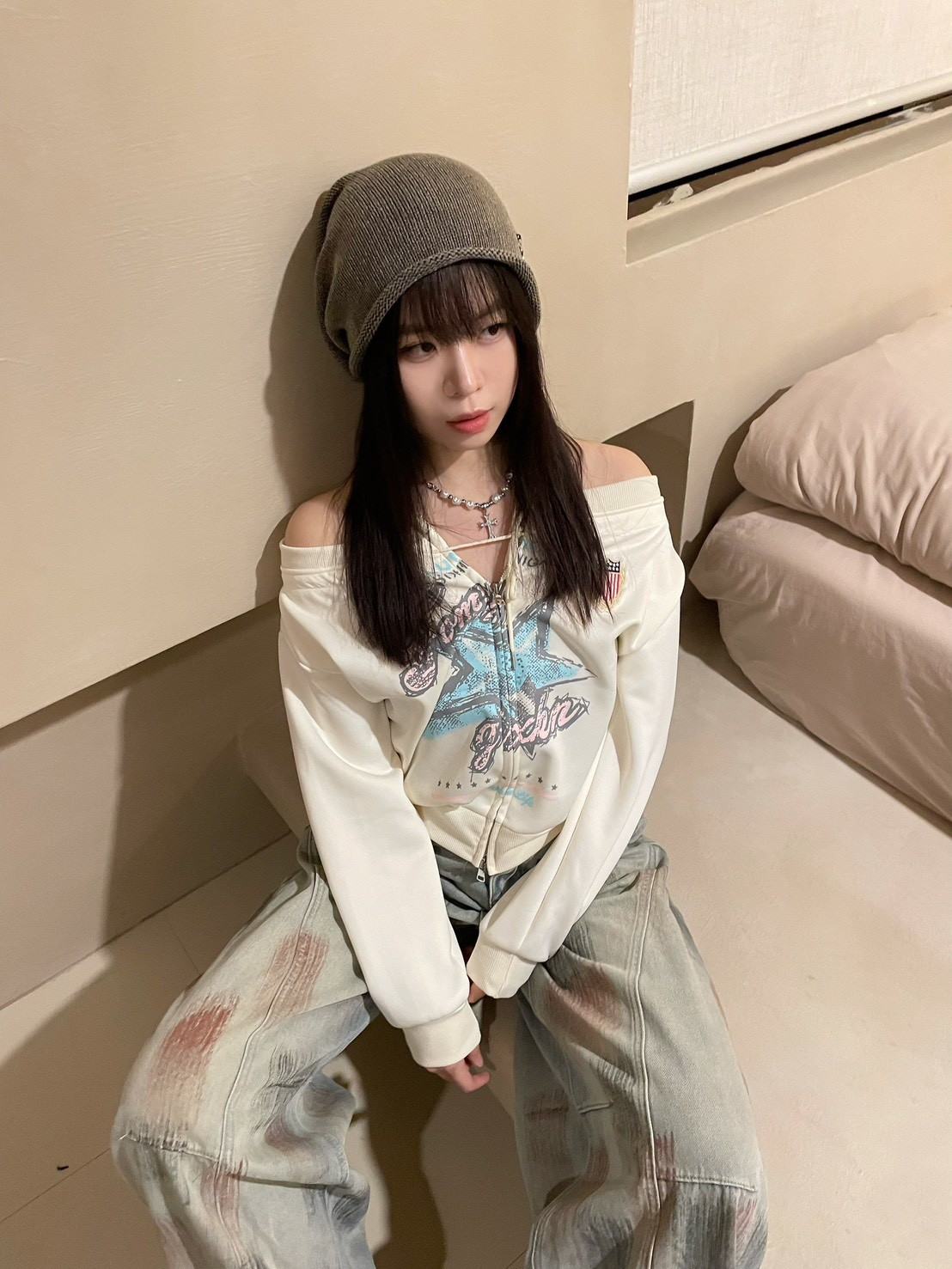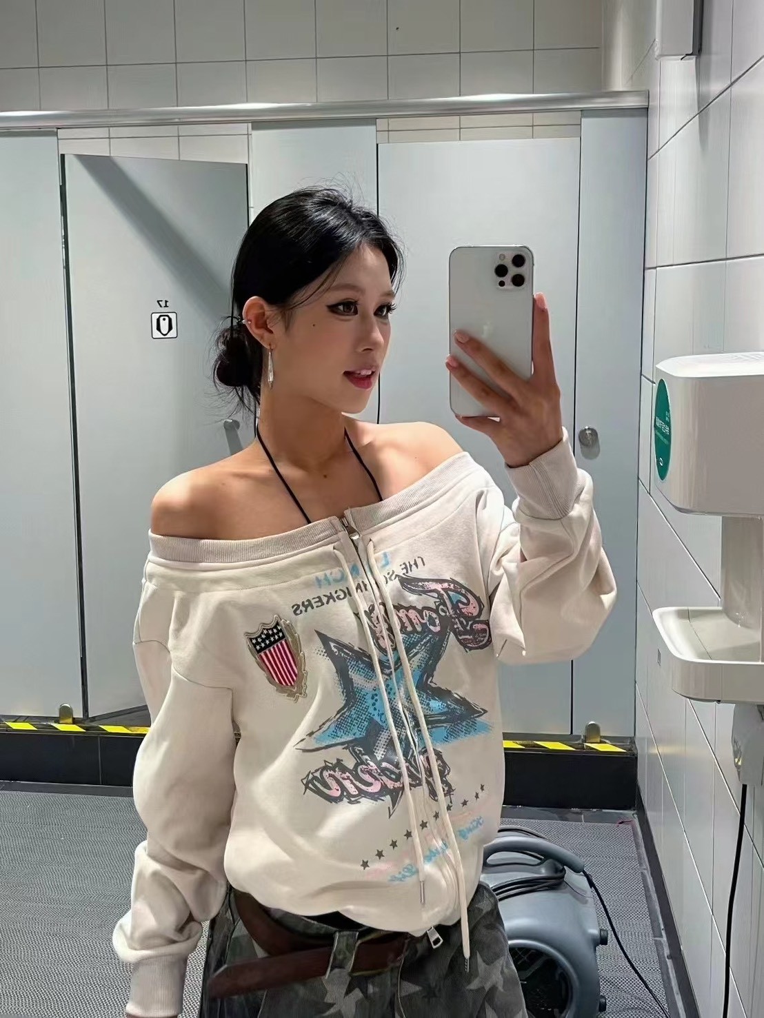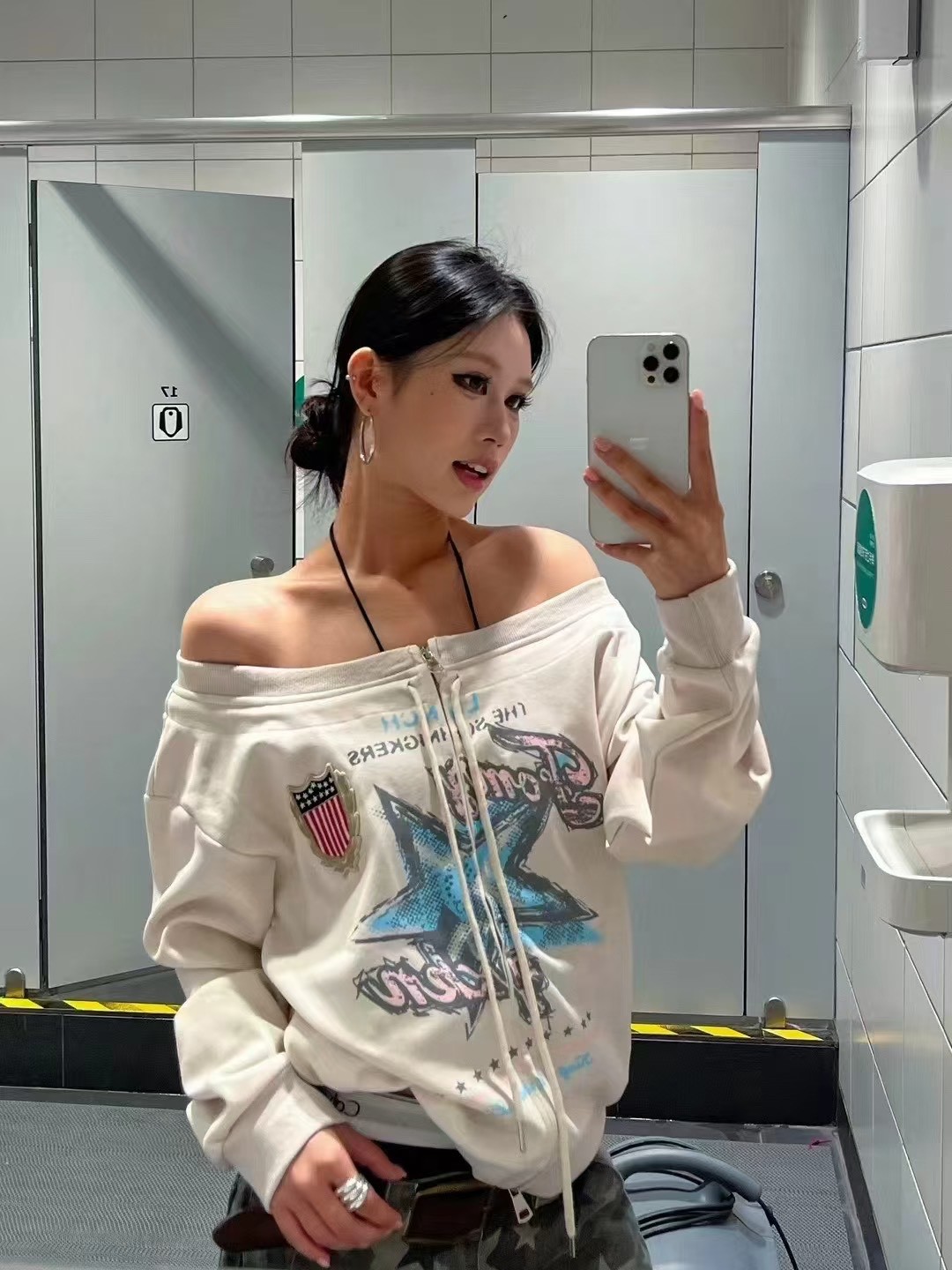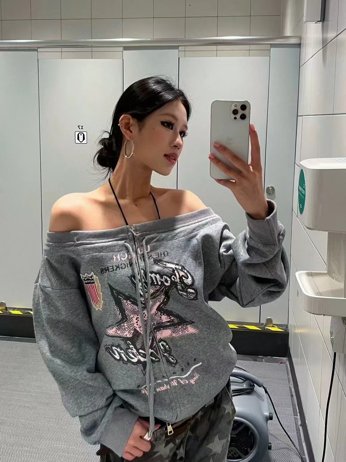 復古手繪星星一字領衛衣