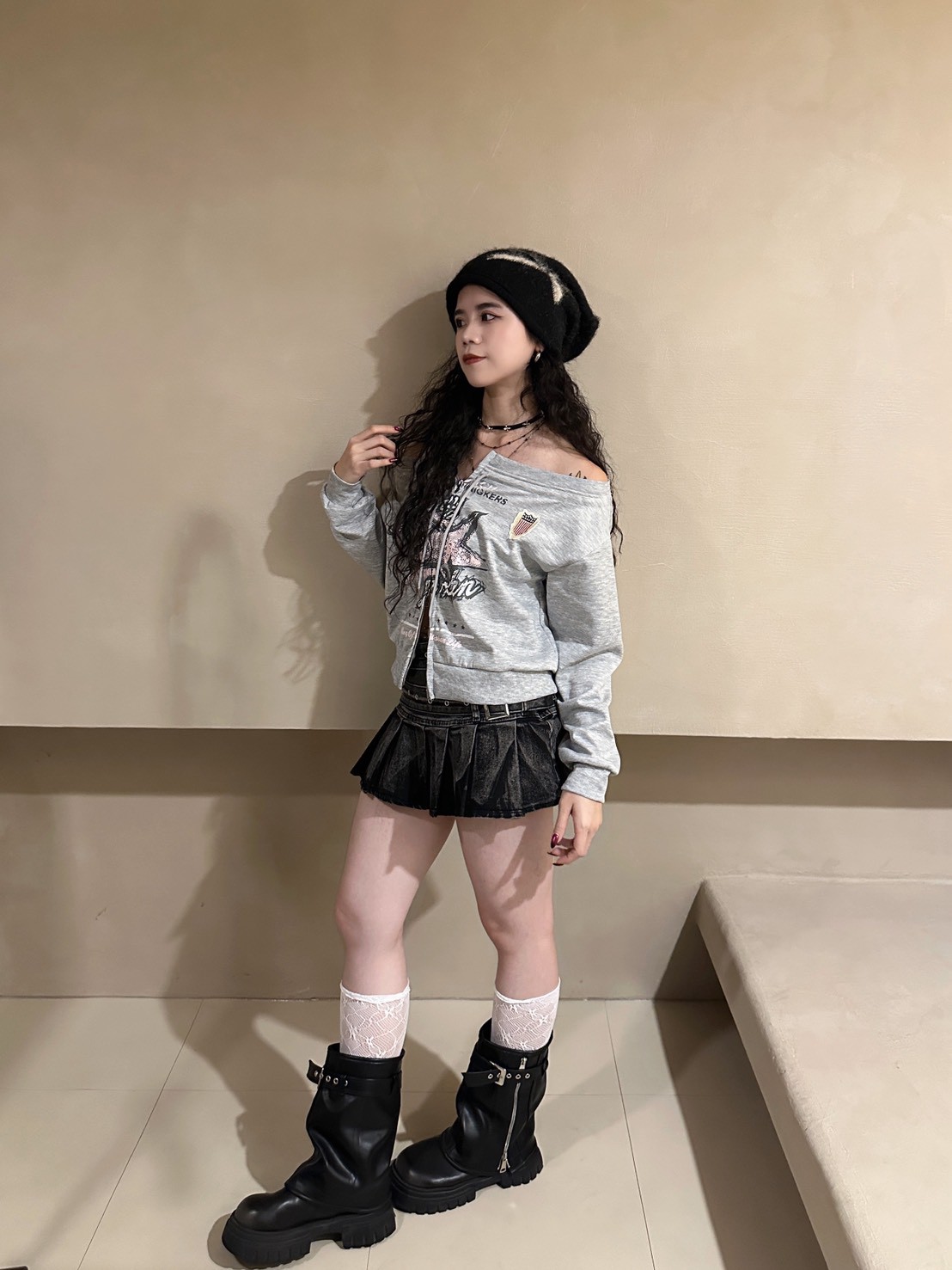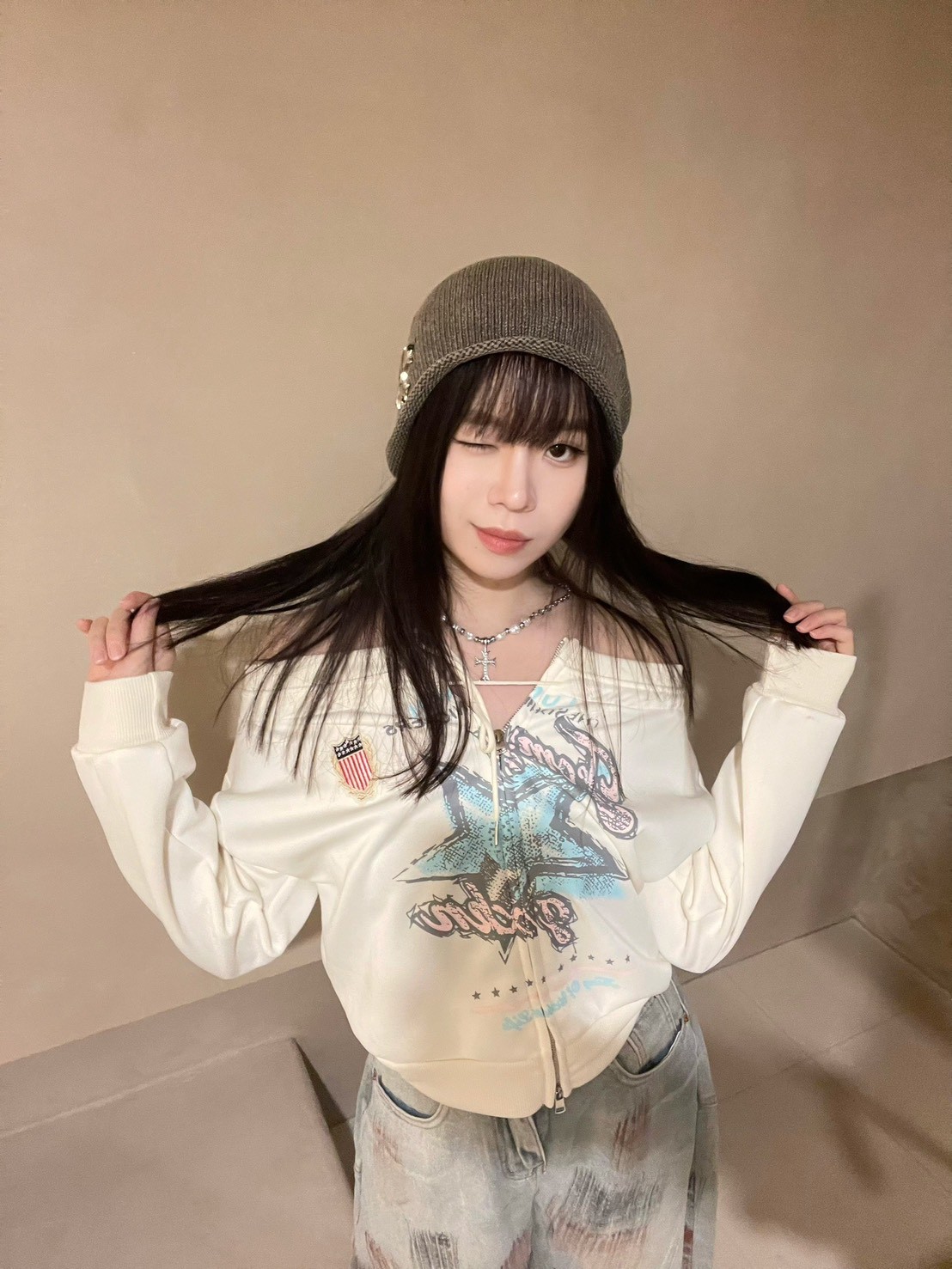 灰色 米白色