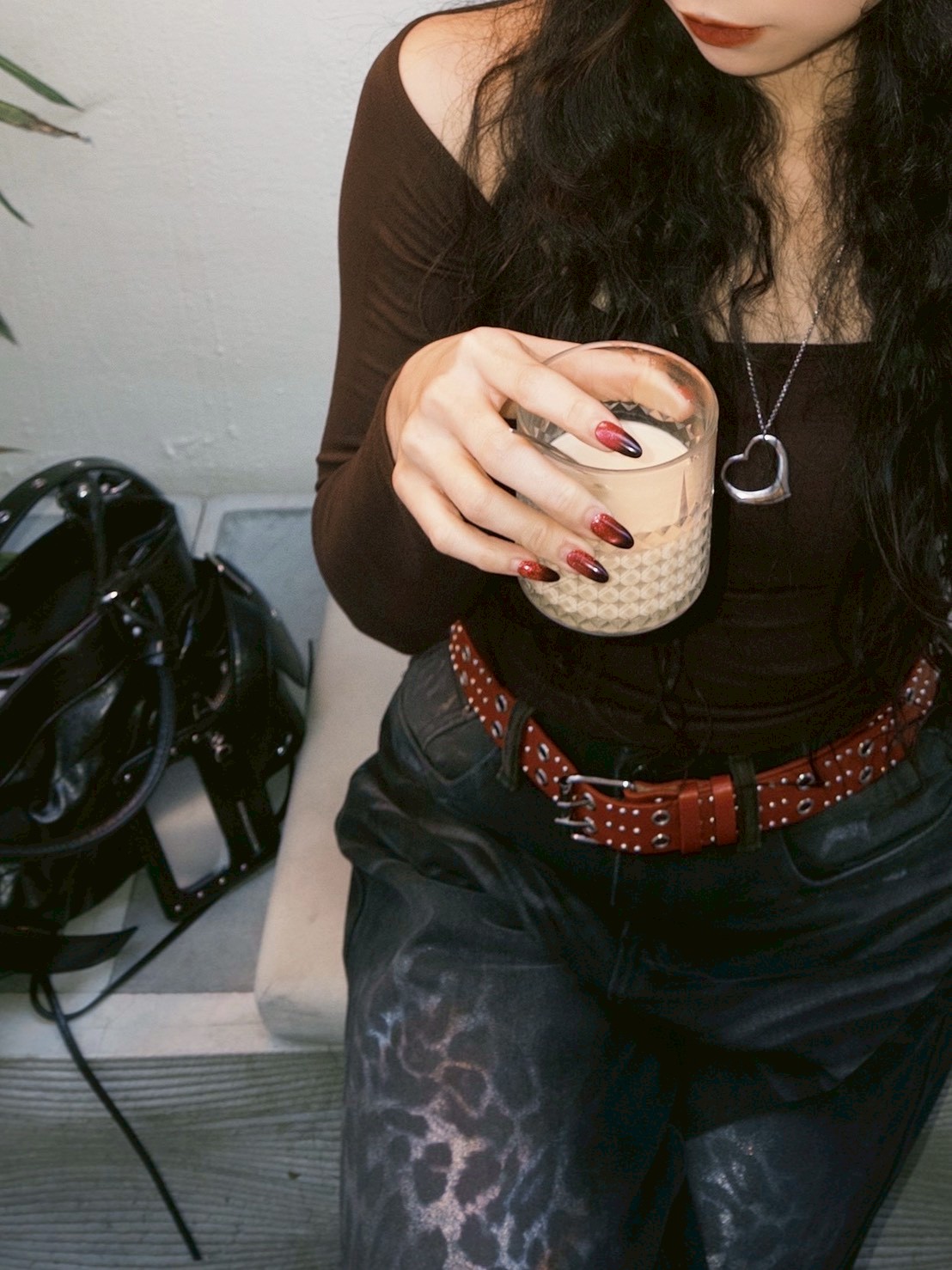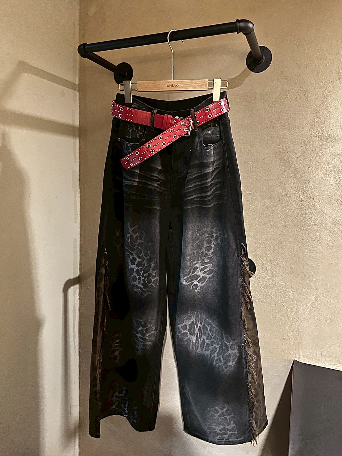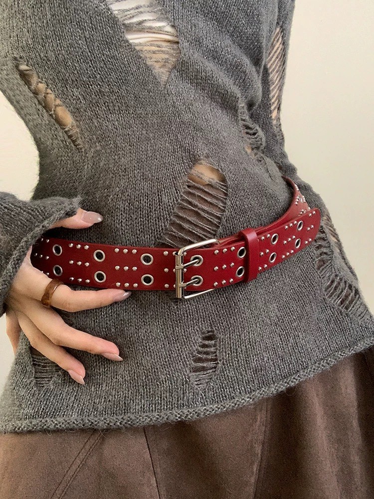 復古紅龐克鉚釘皮帶
