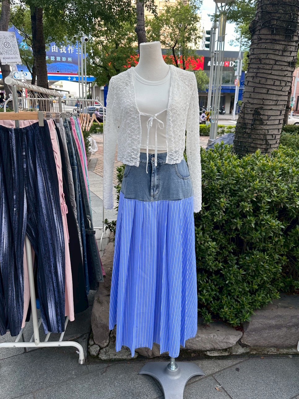 正韓 條紋拼接牛仔半身裙