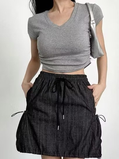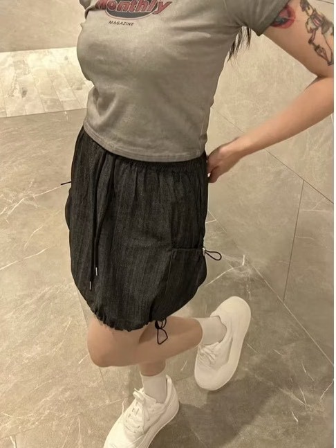 正韓 線條感刷色抽繩燈籠裙