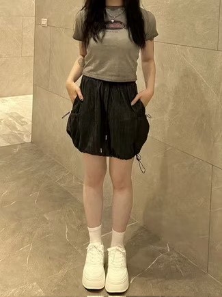 正韓 顯瘦褶皺棉質運動褲