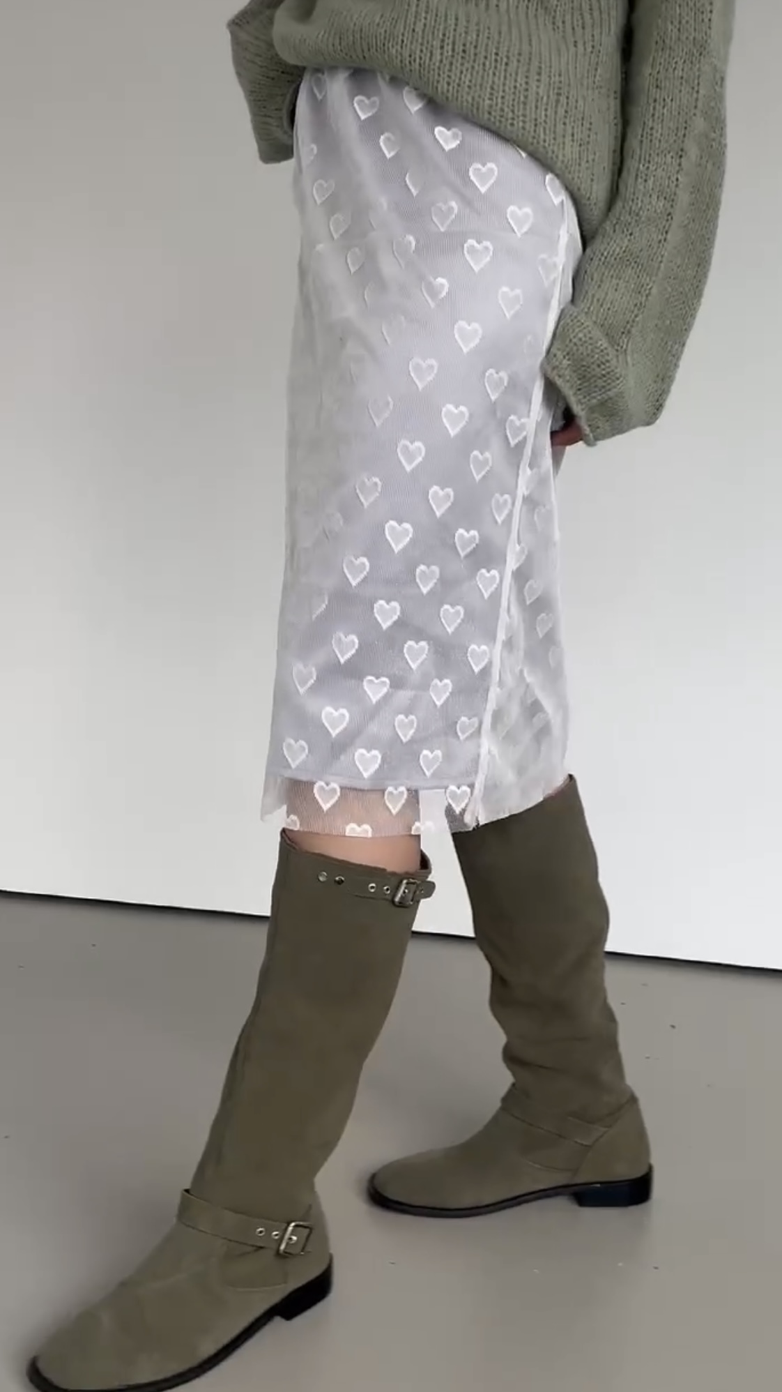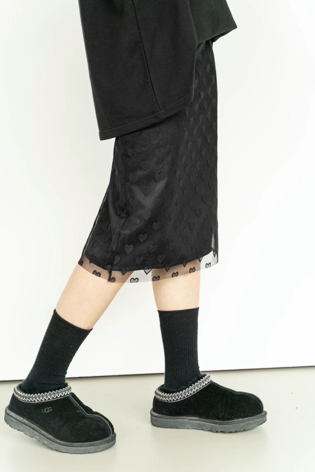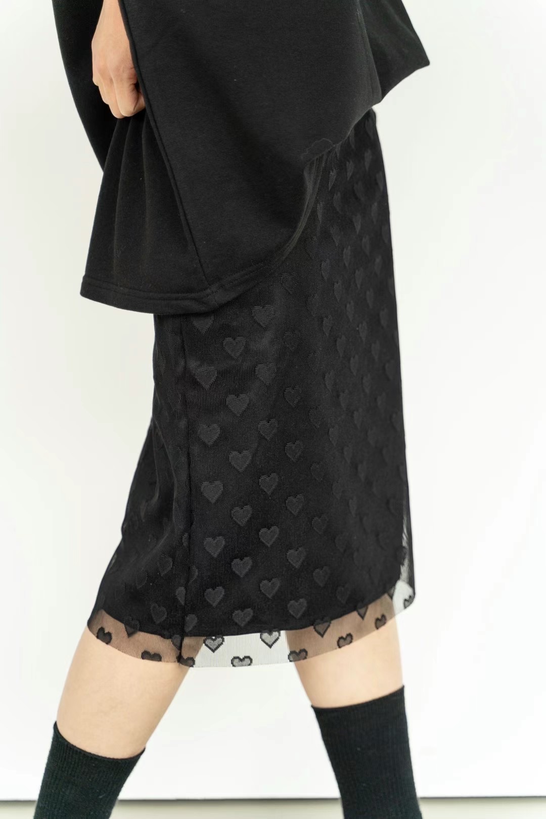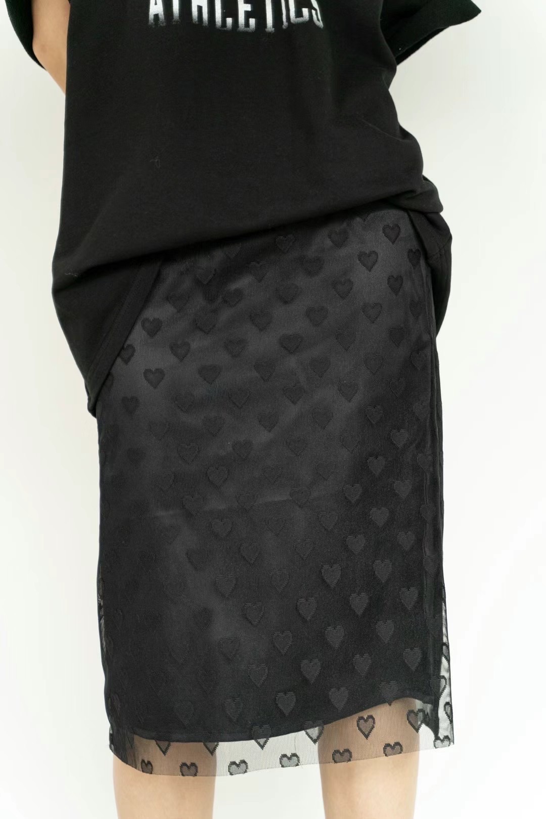 正韓設計師款 愛心網紗雙層六分裙