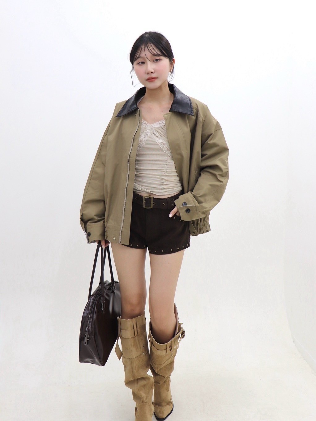 麂皮圓環腰釦短褲