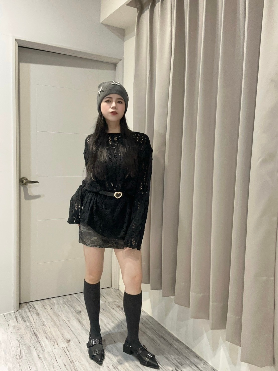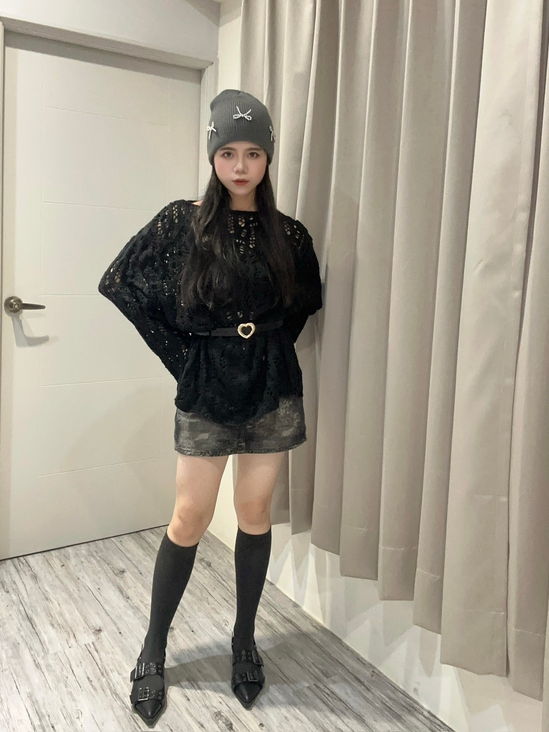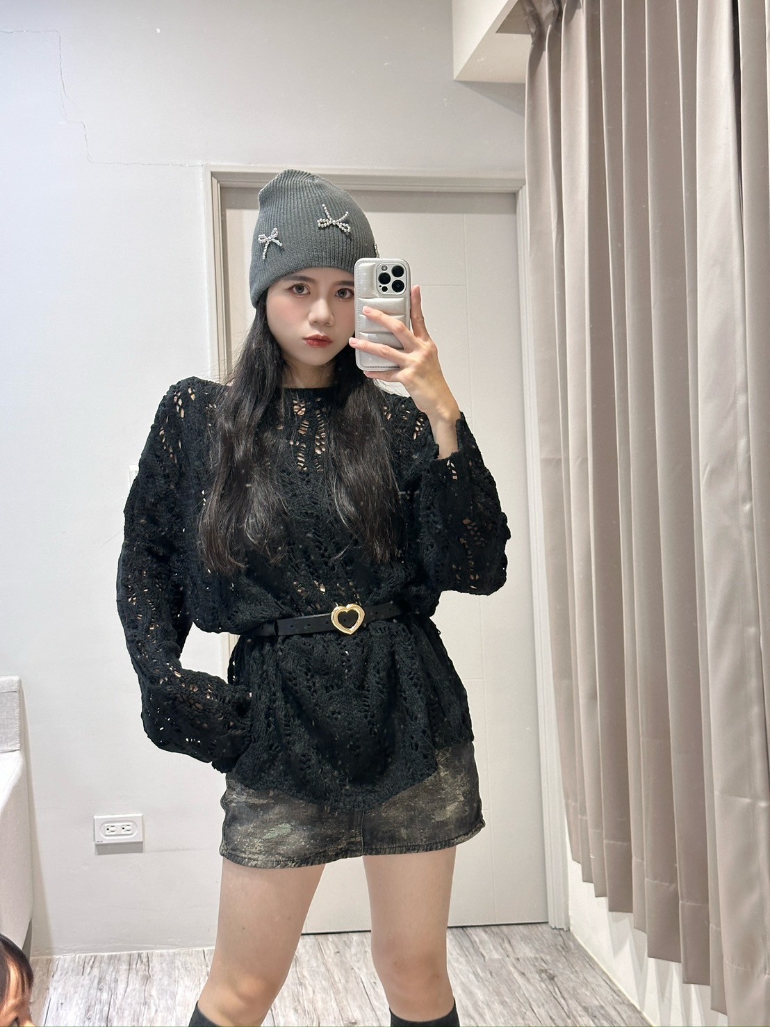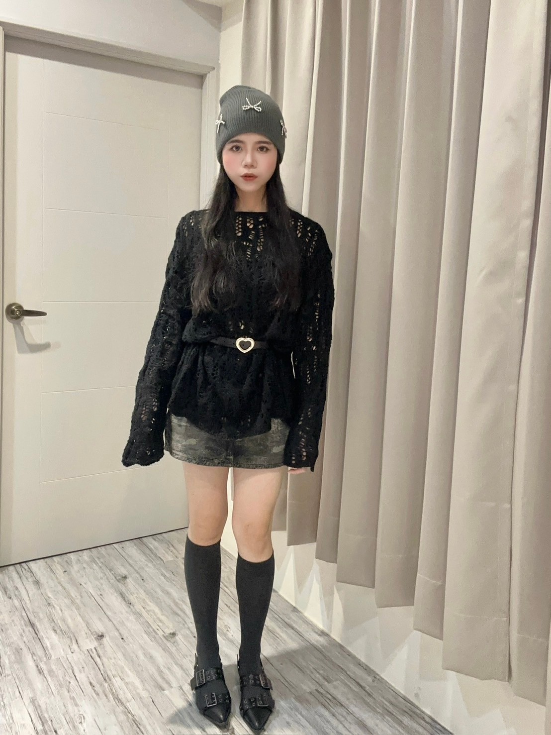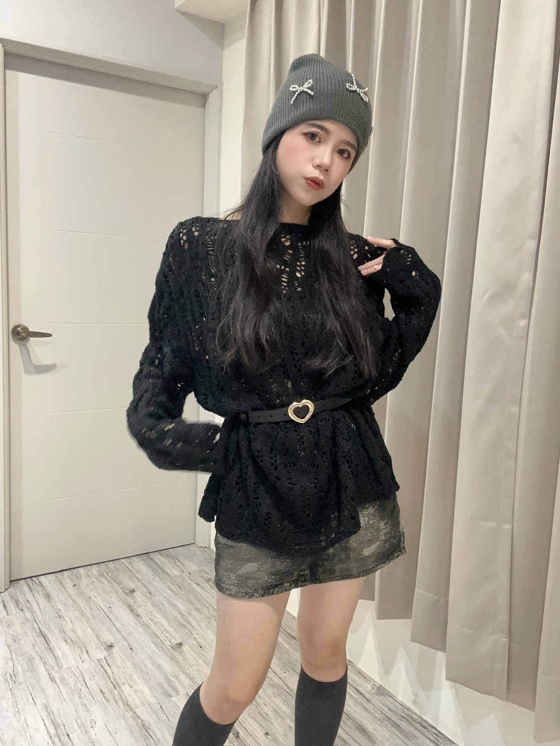 卡哇依愛心扣麻花針織衫