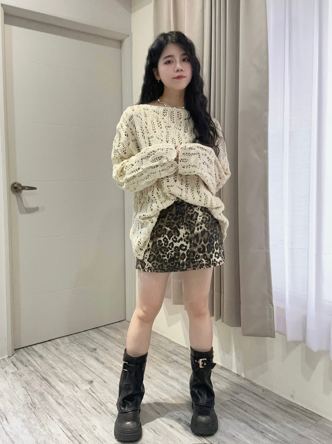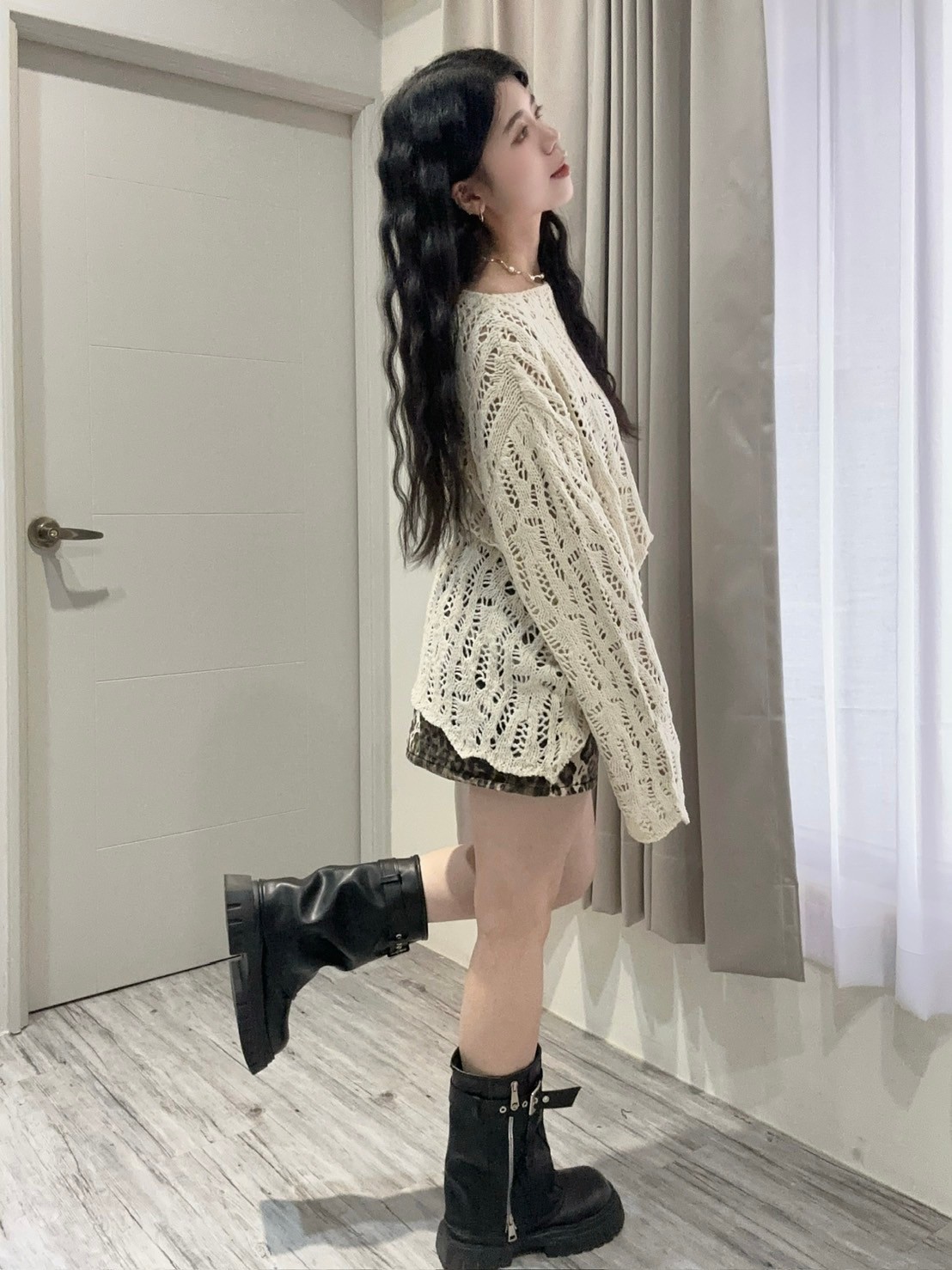 秋日落葉洞洞長版針織衫