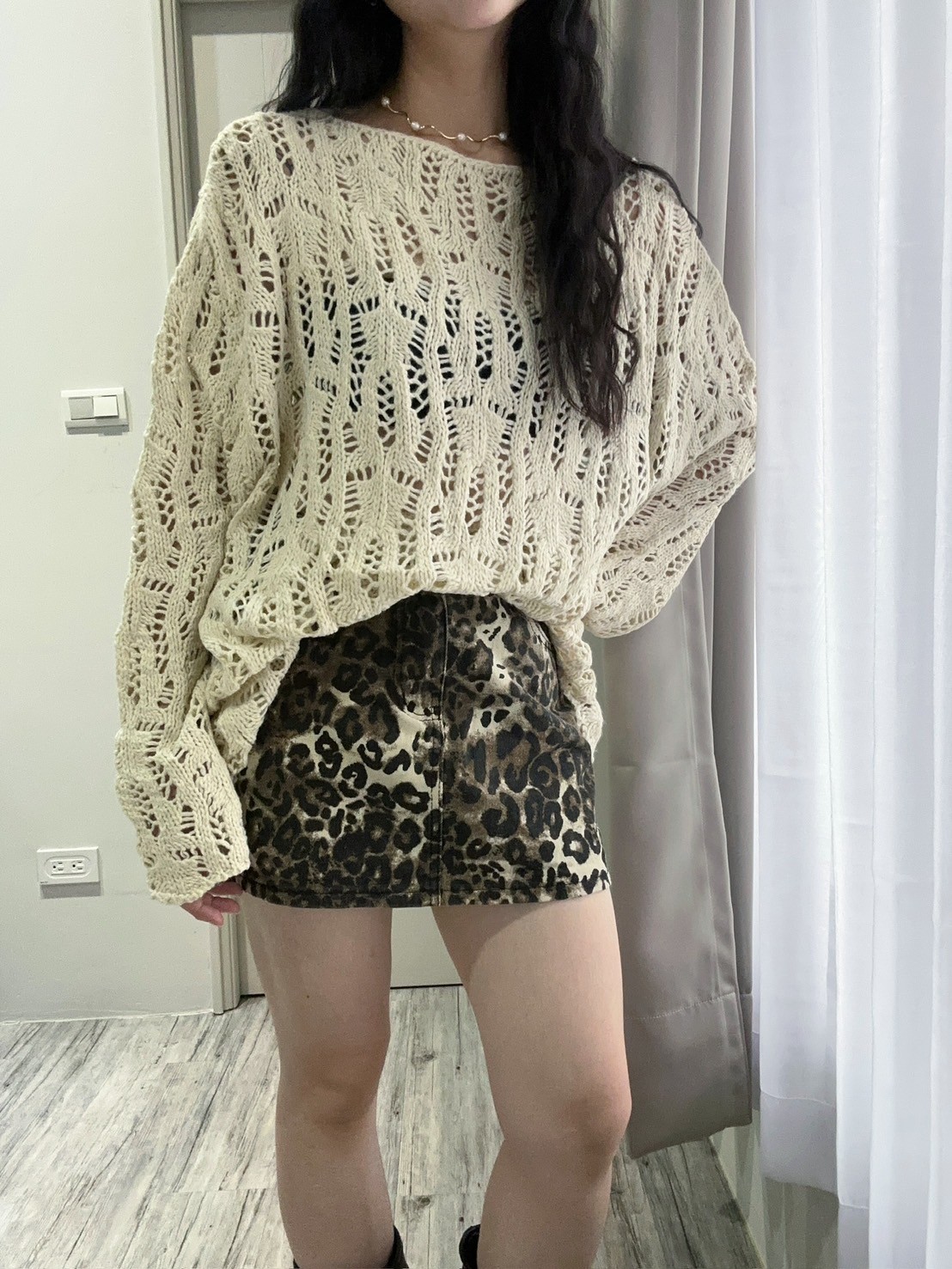 蕾絲滾邊oversized針織毛衣