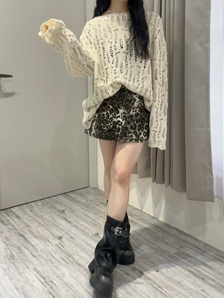 正韓 後磅挖洞設計寬鬆針織毛衣